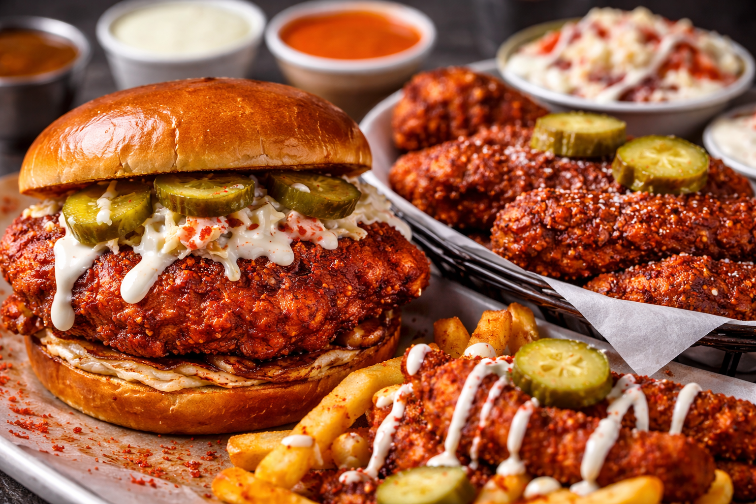 We built our flavor around that signature Nashville-style kick: crispy, juicy chicken coated in bold seasoning and finished with heat that builds with every bite.
